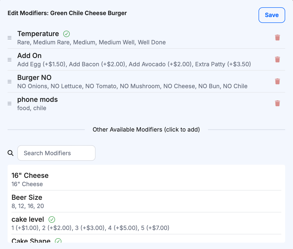 You can produce any modifications for your dishes so that your servers and customers can customize their orders.
