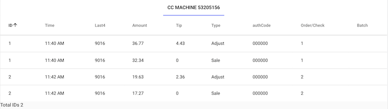 ID: The id of transaction in the terminal. It’s an incremental number and should always start with 1 after batch closing. Operations on the same transaction would share the same ID. e.g., a credit sale and a later tip adjustment would be on the same ID of the transaction.