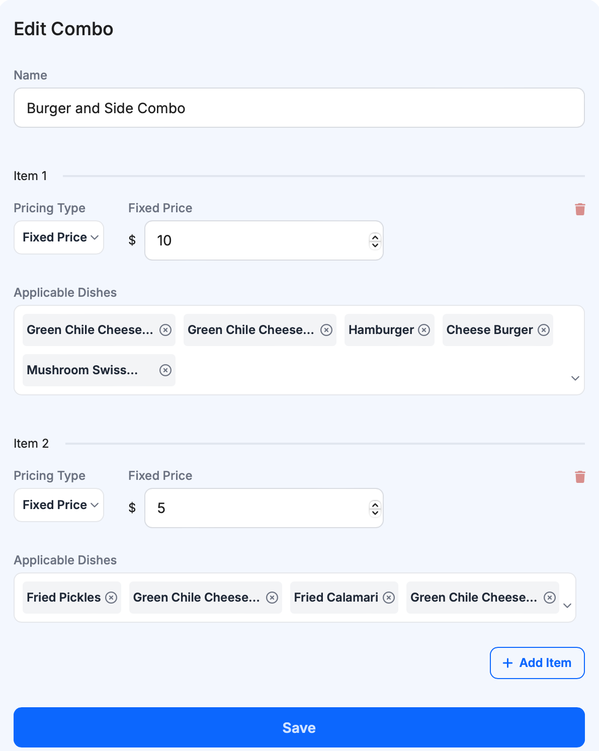 ::: info Example Burger + Fries + Soda = Burger Meal for $10 should be Burger: fixed price $8 Fries: fixed price $1 Soda: fixed price $1 :::