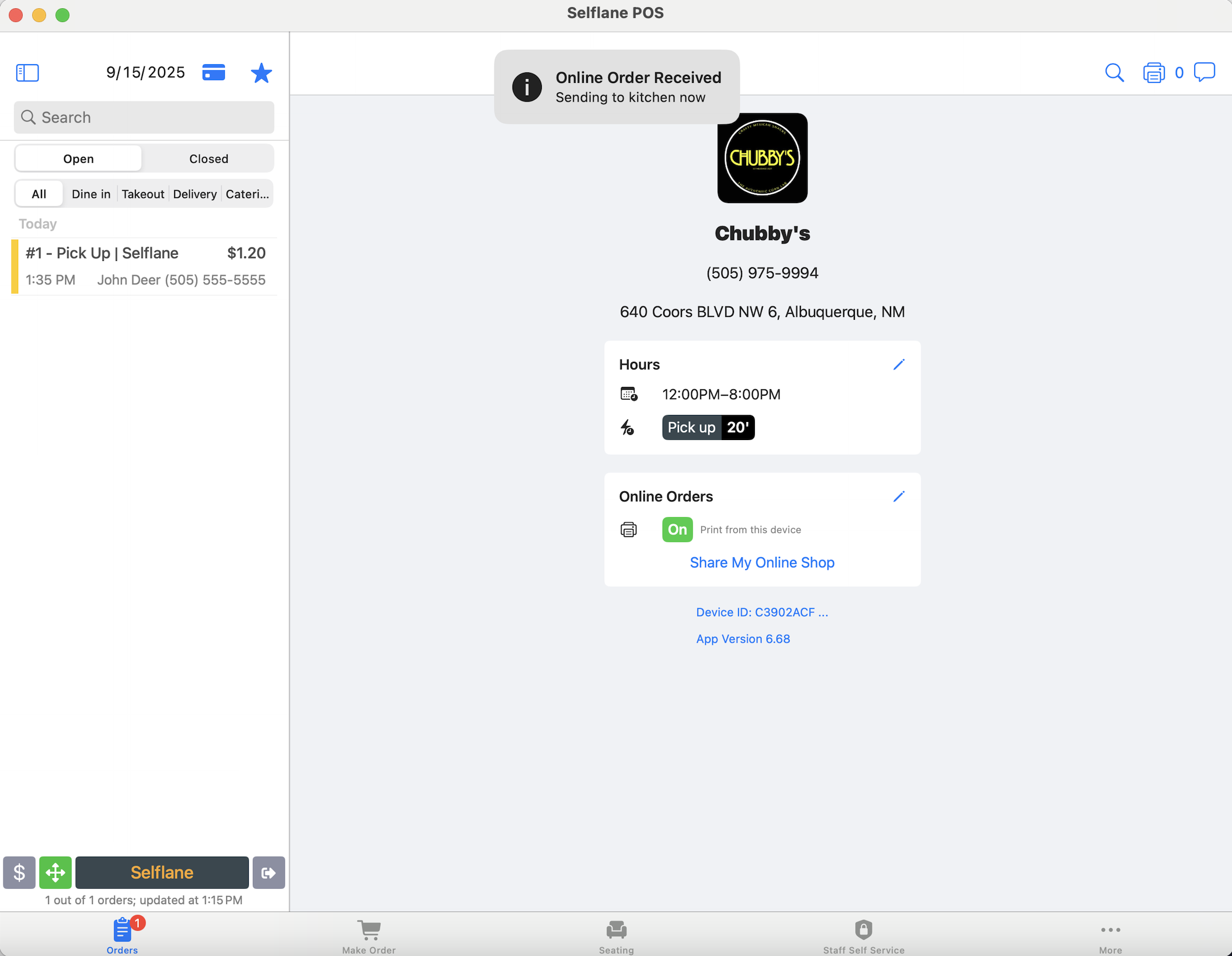 The best way to receive online orders is to use our iPad POS App. It’s free to download and free to use for online orders. When an online order is placed to your restaurant, the iPad POS App would receive it and show a notification. You can see the details of the order, print a customer receipt, and notify customer when the order is processed.