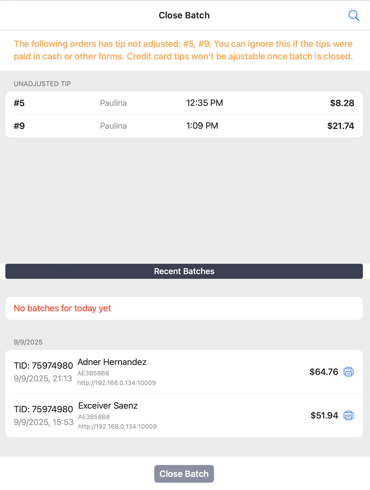 Closing the batch manually will allow the system to record all the details of each batch and help you cross-check with your bank deposit. It will also potentially help you get deposits faster than letting the system close the batch itself (usually batches are set to close at midnight).