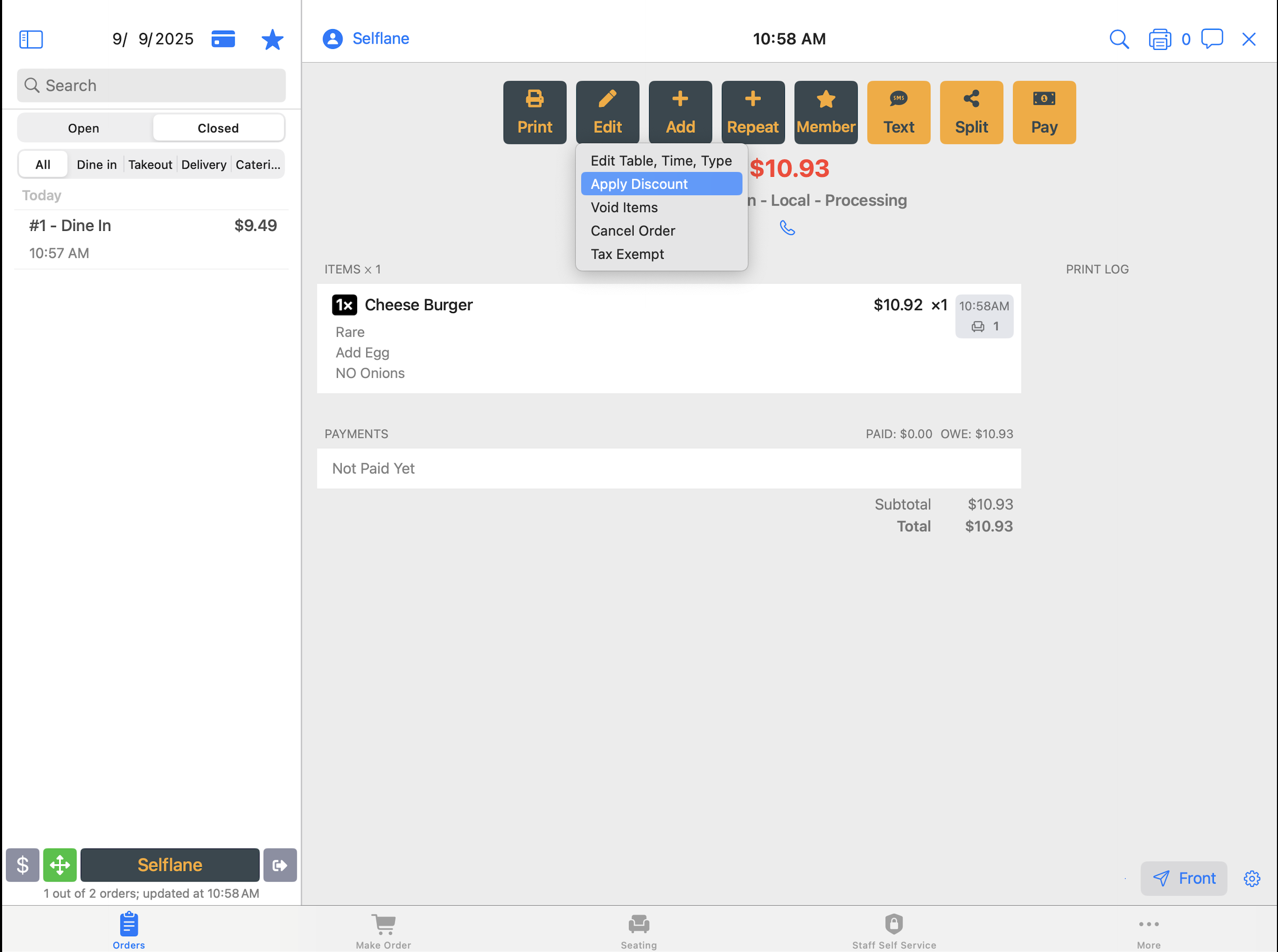 A fixed and named discount can be added either in the process of creating an order or adding items to an existing order.