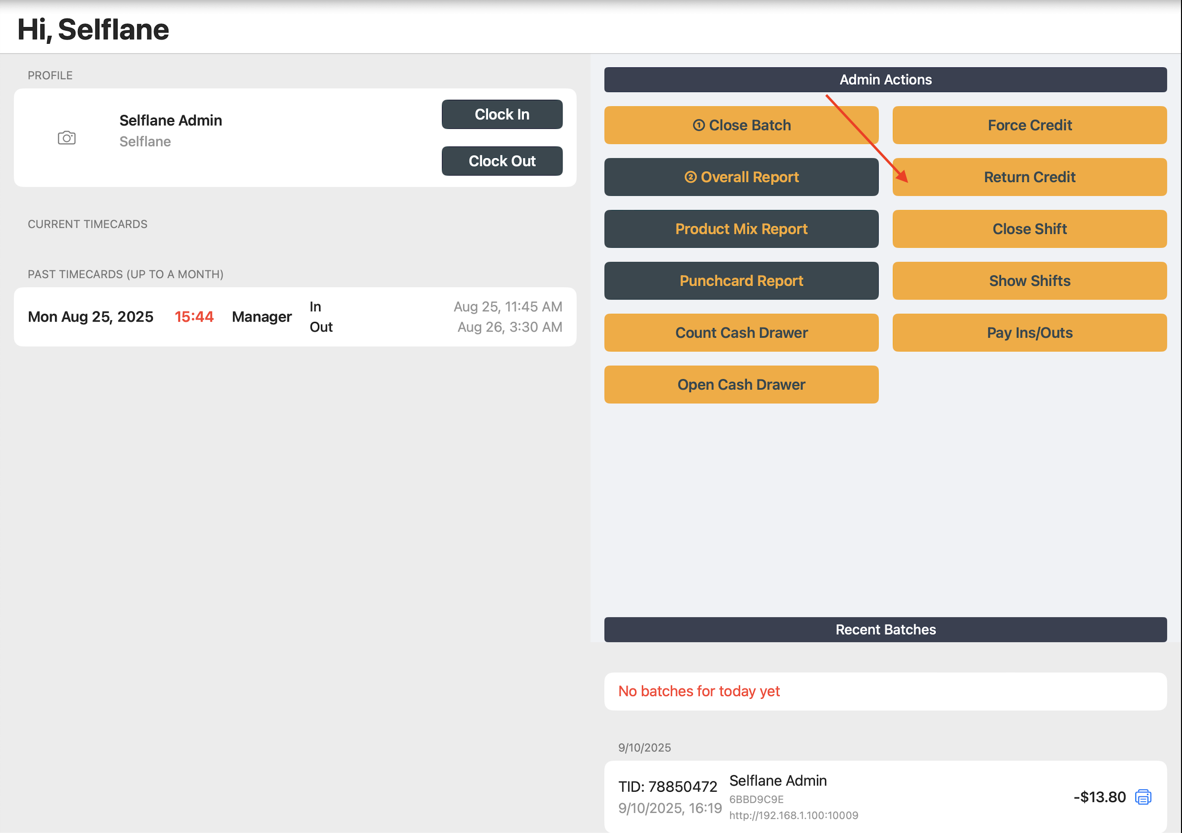 For one with the Manager role, you would have the option in the Staff Self Service to Return Credit.